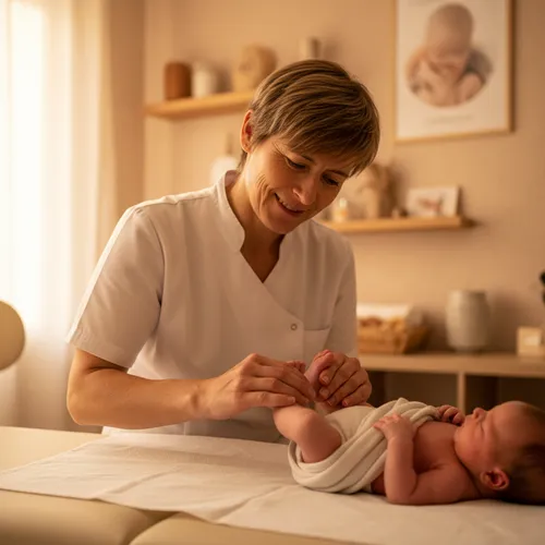Formée en ostéopathie, avec un focus particulier. Une approche fine et respectueuse des besoins du nourrisson dès les premiers jours.